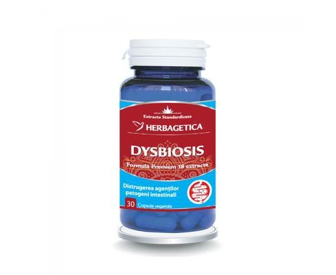 Dysbiosis inhibă dezvoltarea bacteriilor patogene din microbiomul intestinal, având o formulă premium cu 17 extracte intense, îmbogățită cu Pau D’arco.