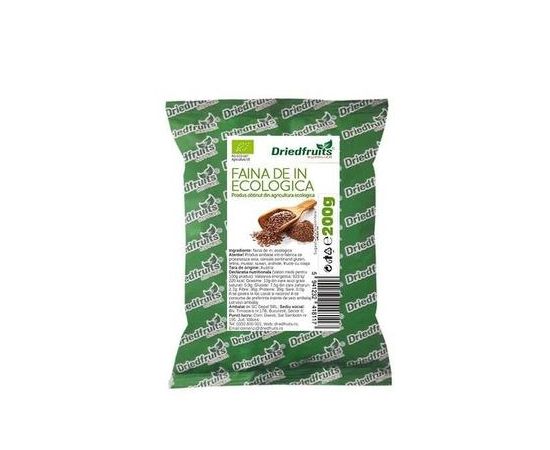 Făina in BIO Driedfruits este un produs de calitate superioară, certificat organic, obținut din semințe de in cultivate ecologic. Această făină fină păstrează toate proprietățile nutritive ale semințelor de in, fiind produsă printr-un proces de măcinare atent controlat. Produsul este ambalat cu grijă pentru a-i asigura prospețimea și pentru a păstra intacte valorile nutritive.